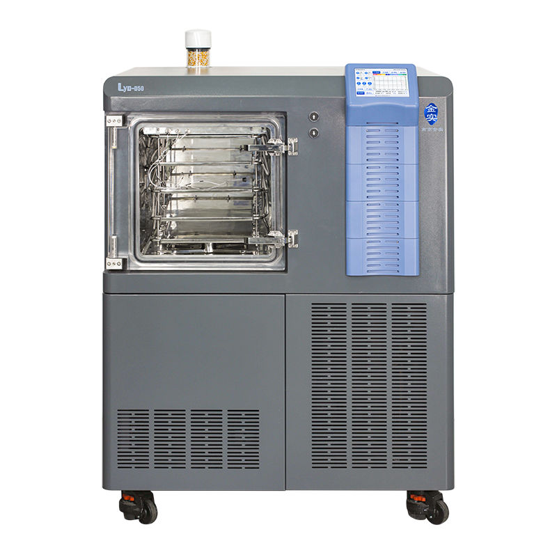 Lyo D50中试型冻干机 冻干技术,也称为低温真空干燥技术,在制药、食品和化妆品等行业中得到广泛应用。冻干机是冻干工艺的核心设备之一,它通过将物料在低温下冷冻,然后在高真空环境下将水分直接转化为气态,从而实现对物料的干燥。